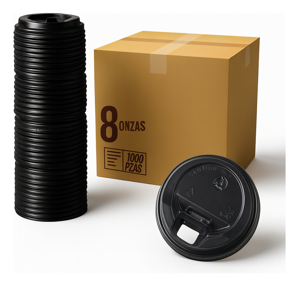 1000 Tapas Para Vasos 8oz Desechables Con Protección Café Color Negro