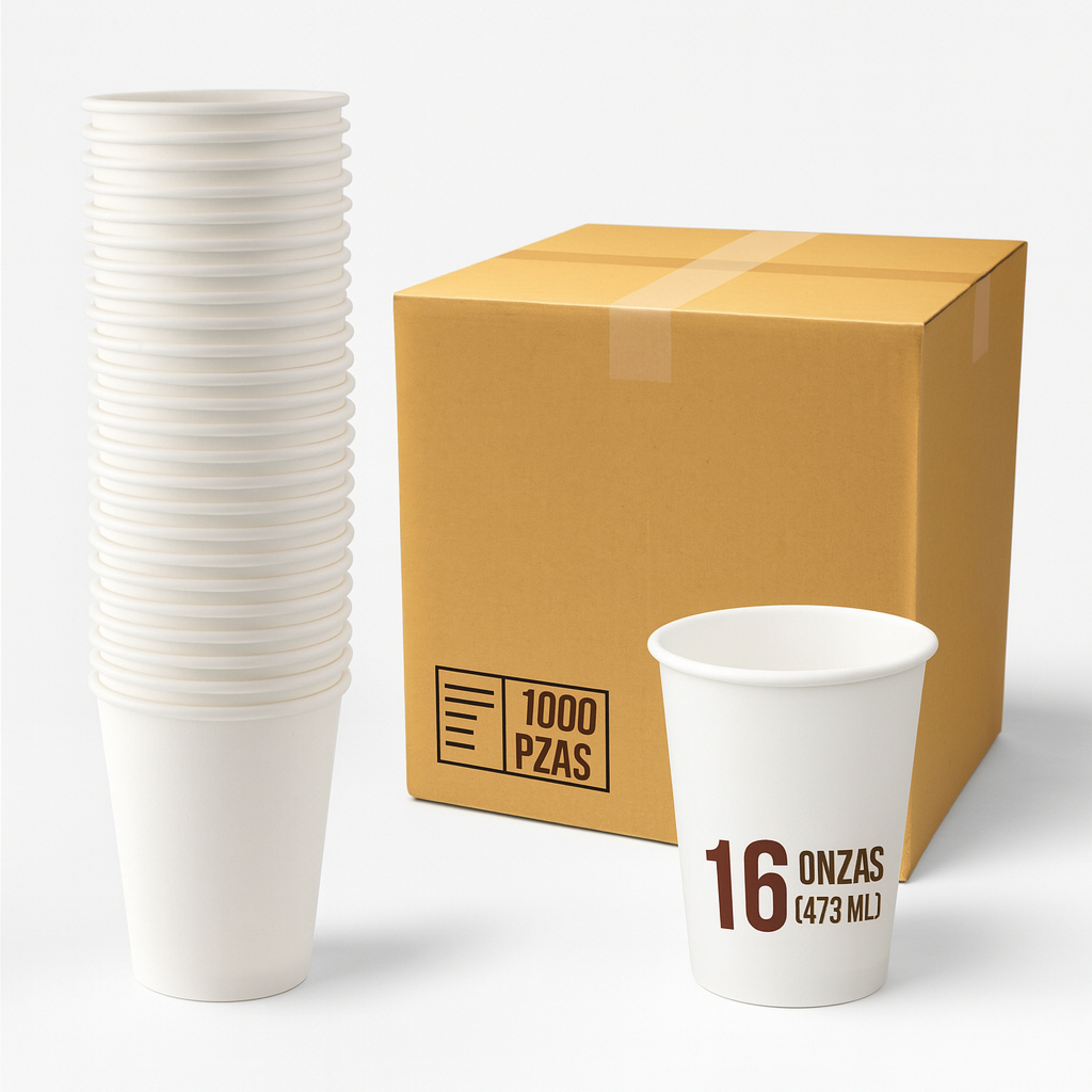 1000 Vasos Desechables 16oz Para Café, Nieve, Fruta, Postre Color Blanco