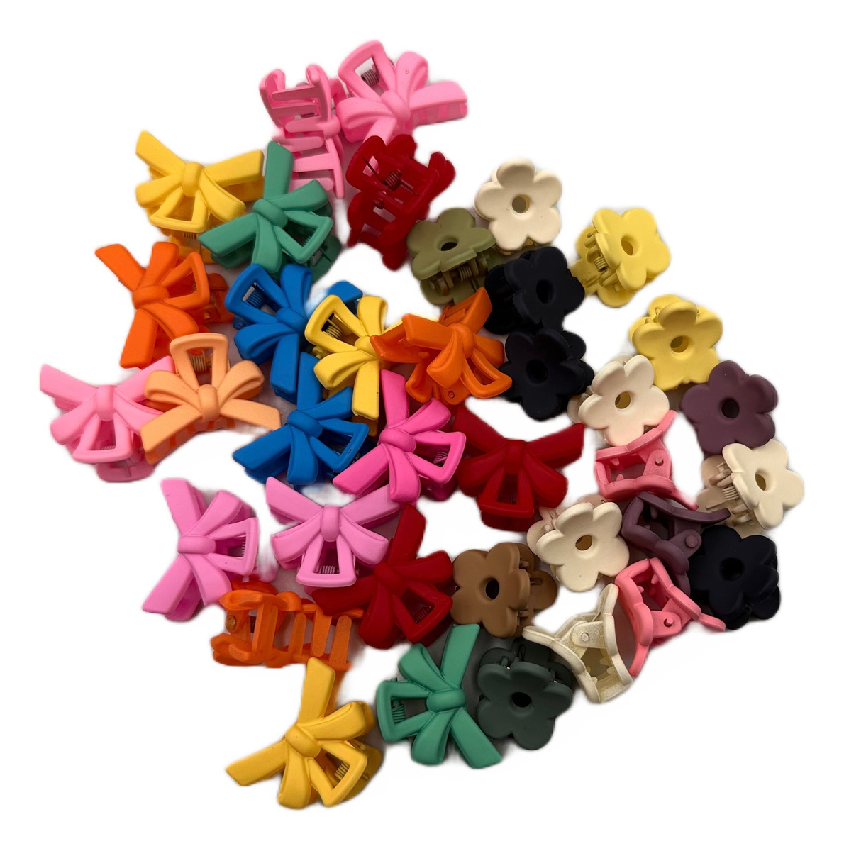 Paquete de Flores y Moños + Paquete de Flores y Corazones: Cada paquete incluye una variedad de diseños encantadores, con 20 mini pinzas en forma de flores y moños, y 20 mini pinzas en forma de flores y corazones, son variantes diferentes, ¡permitiéndote crear una amplia gama de looks divertidos y originales!