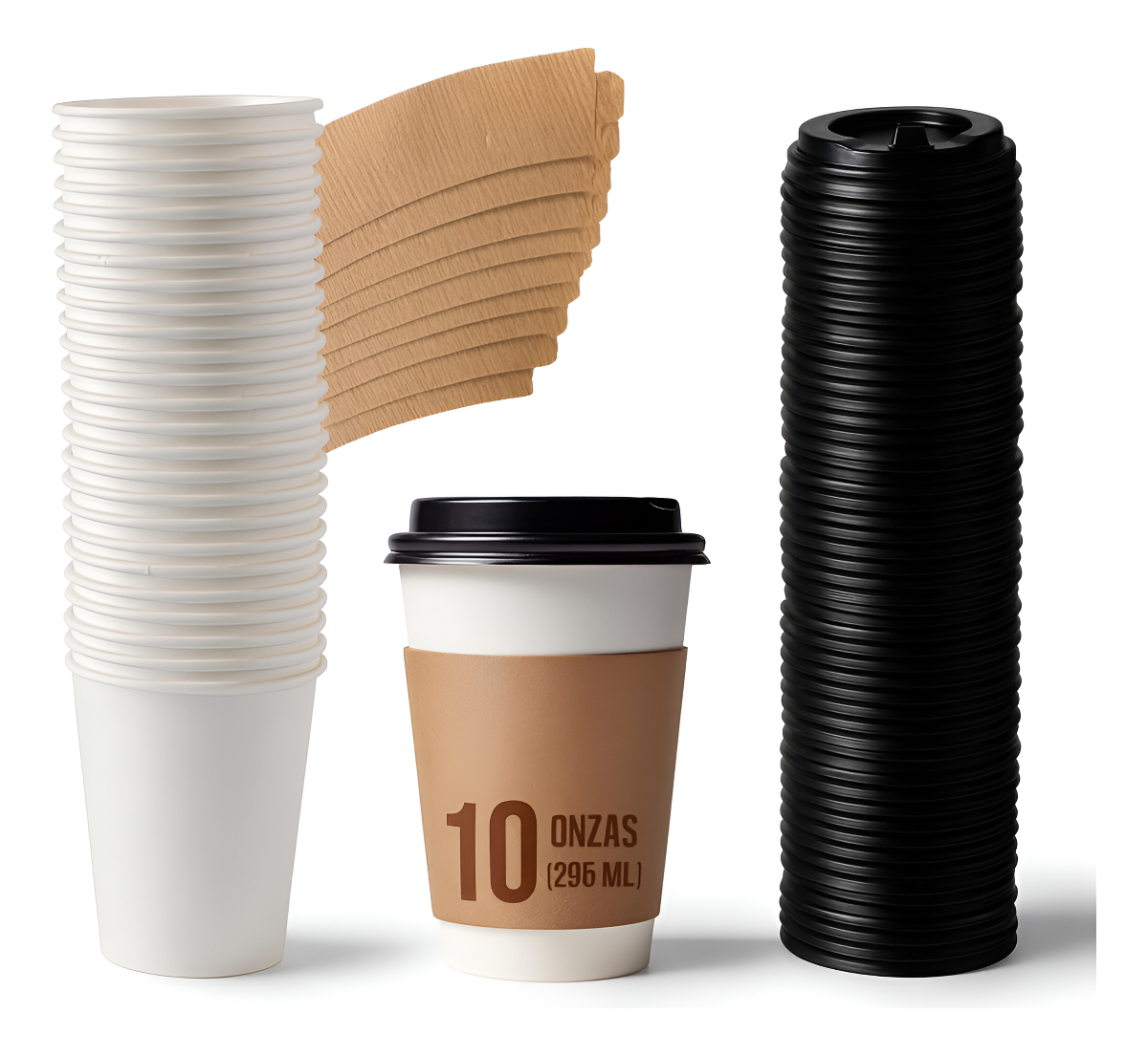 Eleva tu experiencia de tomar café con nuestro paquete completo de 50 vasos desechables de 10 onzas, ideal para cualquier ocasión, ya sea en la oficina, en reuniones, o en eventos. Este paquete incluye todo lo que necesitas para disfrutar de tus bebidas favoritas con comodidad y estilo.