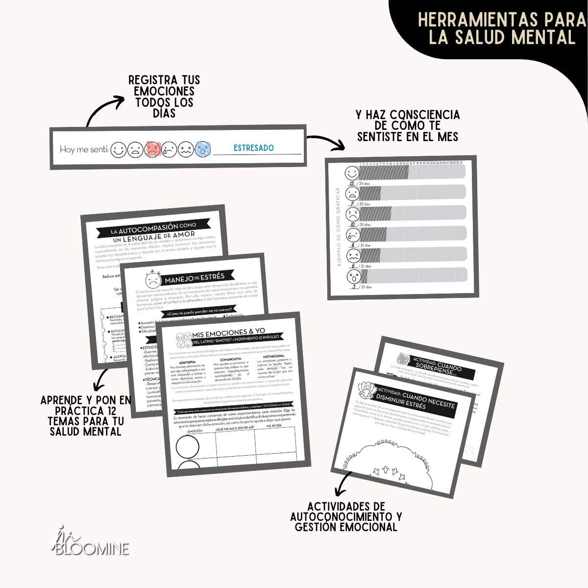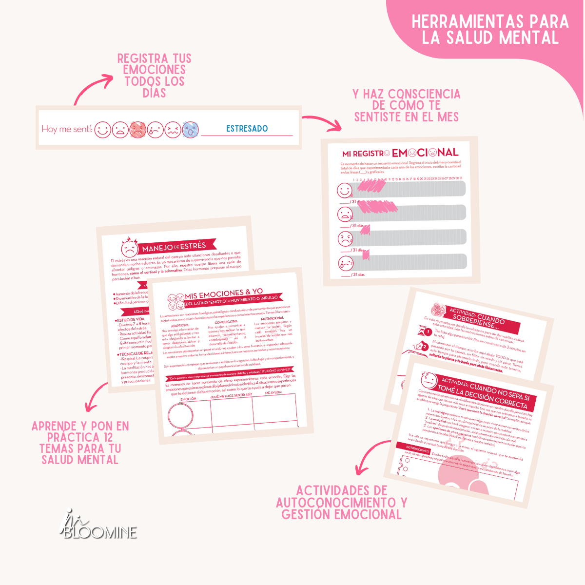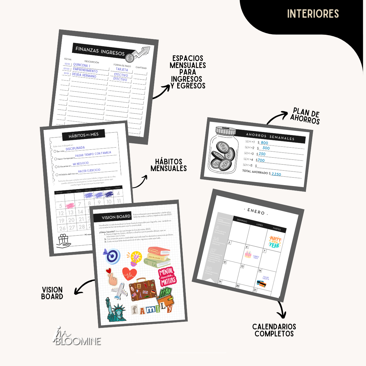 Agenda Psicoemocional Bloomine 2025: Diseñada para acompañarte en el autoconocimiento y bienestar emocional, esta agenda es más que una herramienta de organización: te guía a conectar contigo mismo cada día. Con secciones de gestión emocional y desarrollo personal, permite trabajar en metas y emociones en un solo lugar. Ideal para quienes buscan equilibrio y propósito en 2025.