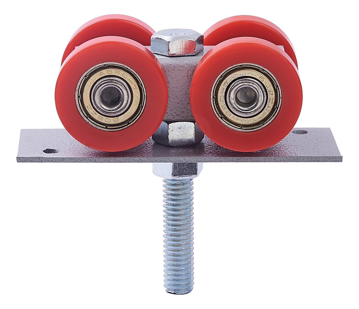 Carretilla de alta resistencia para portones corredizos, diseñada para soportar cargas pesadas y ofrecer un desplazamiento suave, silencioso y seguro. Ideal para portones industriales, comerciales o residenciales de gran tamaño.