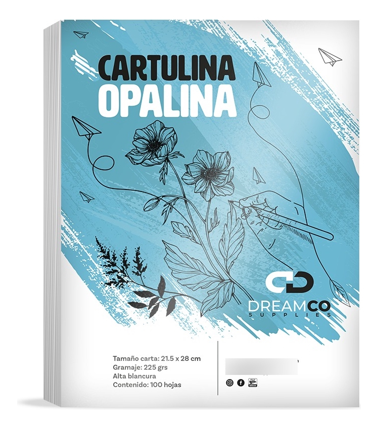 Paquete de 100 hojas de papel cartulina opalina premium tamaño carta (21.7 cm x 28 cm) de 225 gramos.