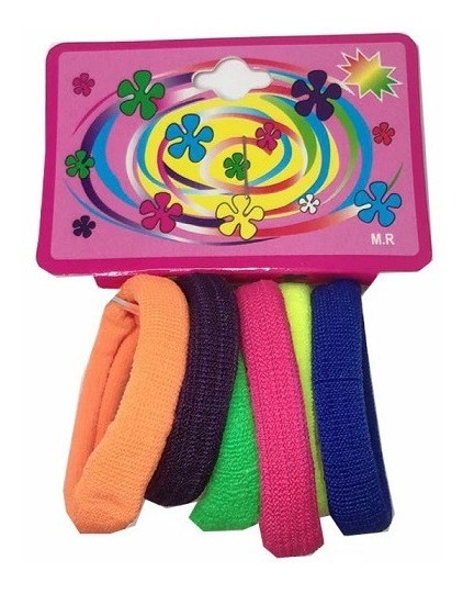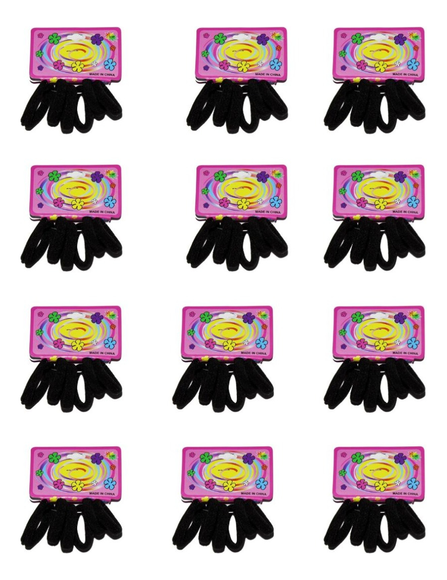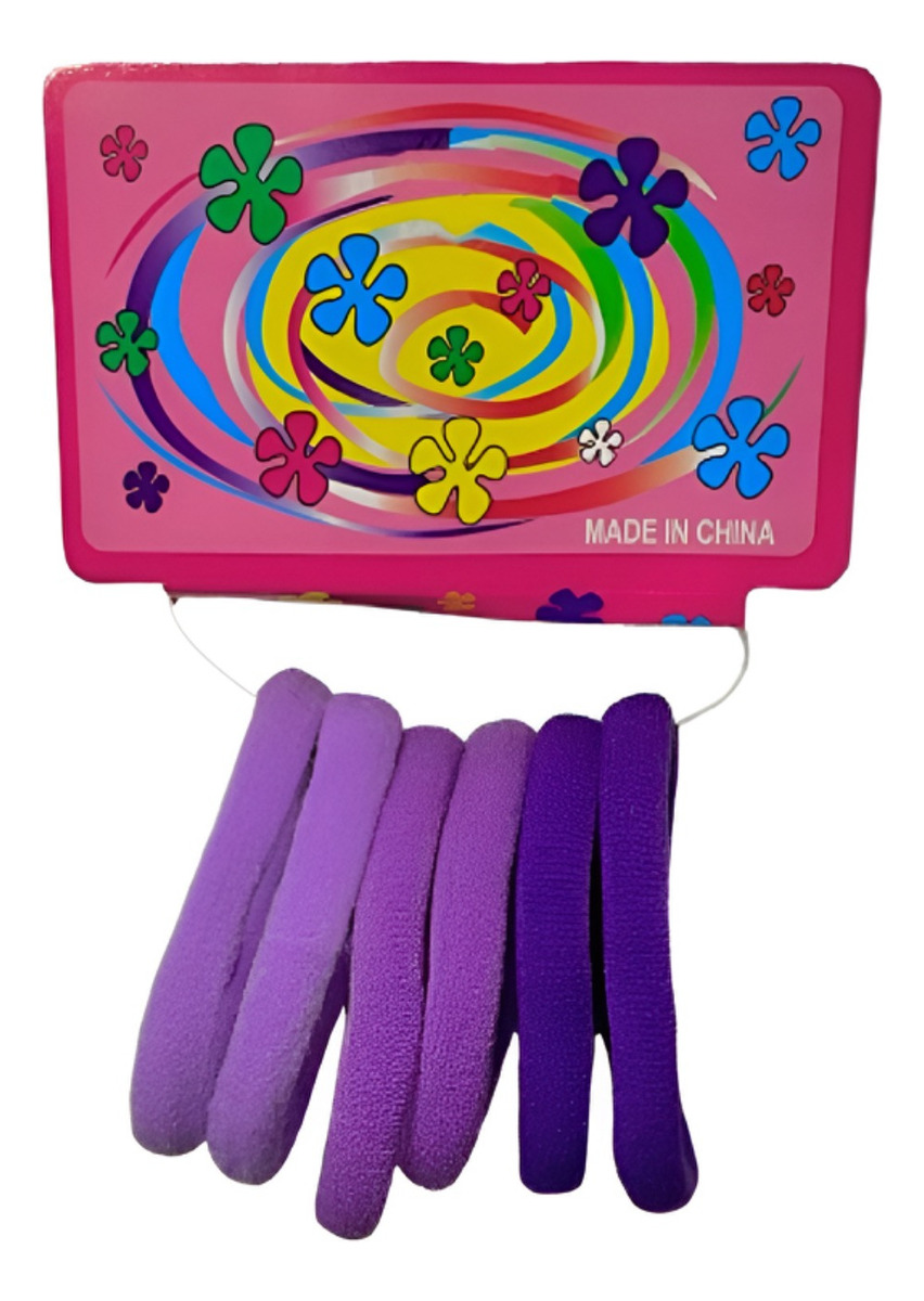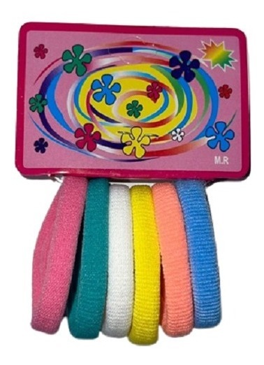 Bolsa de 12 paquetes con 6 ligas de colores cada uno.