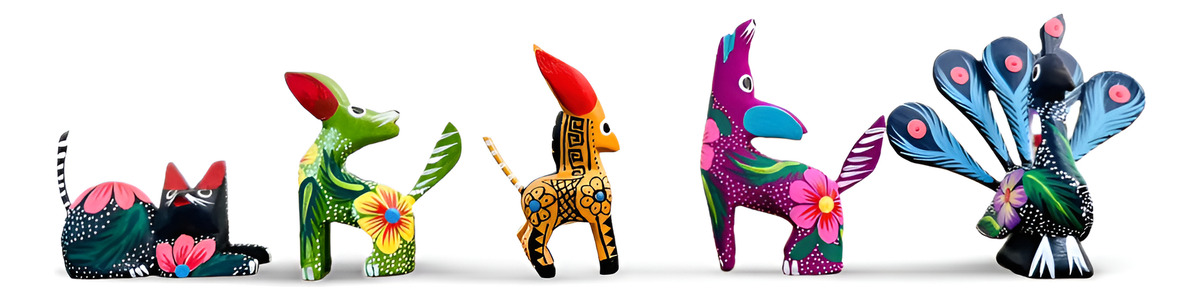 Descubre la belleza y el misterio de los alebrijes con nuestro paquete de 5 figuras hechas a mano. ¡Haz tu pedido ahora y lleva a casa un pedacito de la vibrante cultura mexicana!