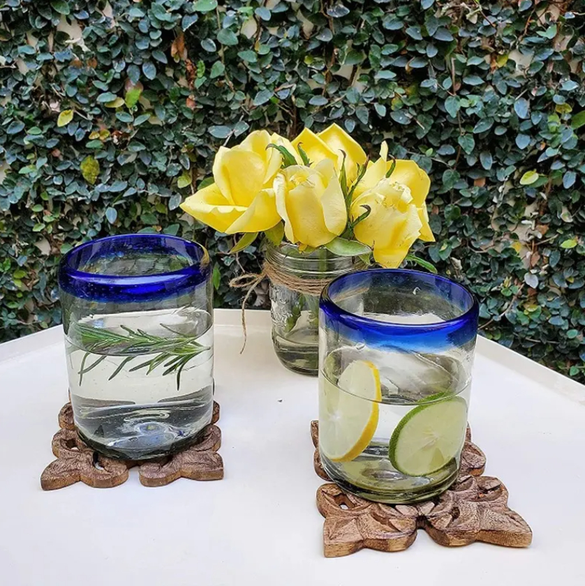 Set de 6 Vasos de Vidrio Soplado Estilo Mexicano.