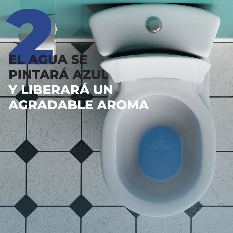 2. Observa cómo el agua se tiñe de azul y disfruta de un ambiente higiénico y fresco.