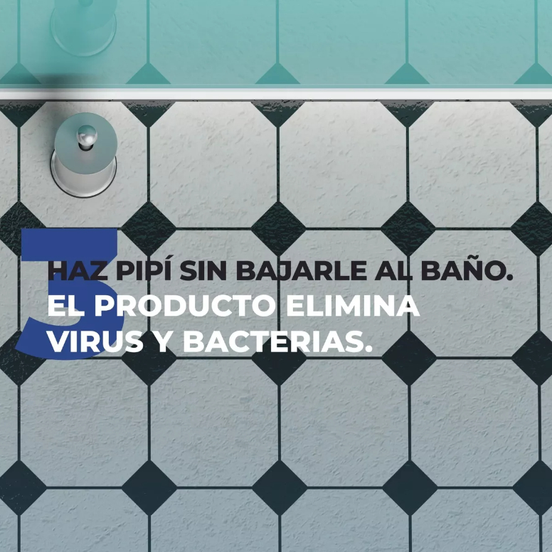 3. Es hora de utilizar el baño. El producto eliminará todos los virus y bacterias.